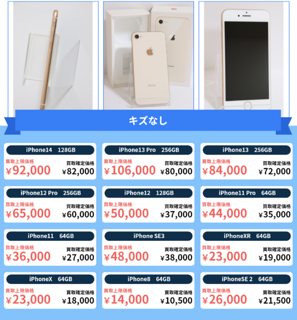 iPhoneの比較的新しい機種であれば、買取金額は業界TOPクラスとなっています。